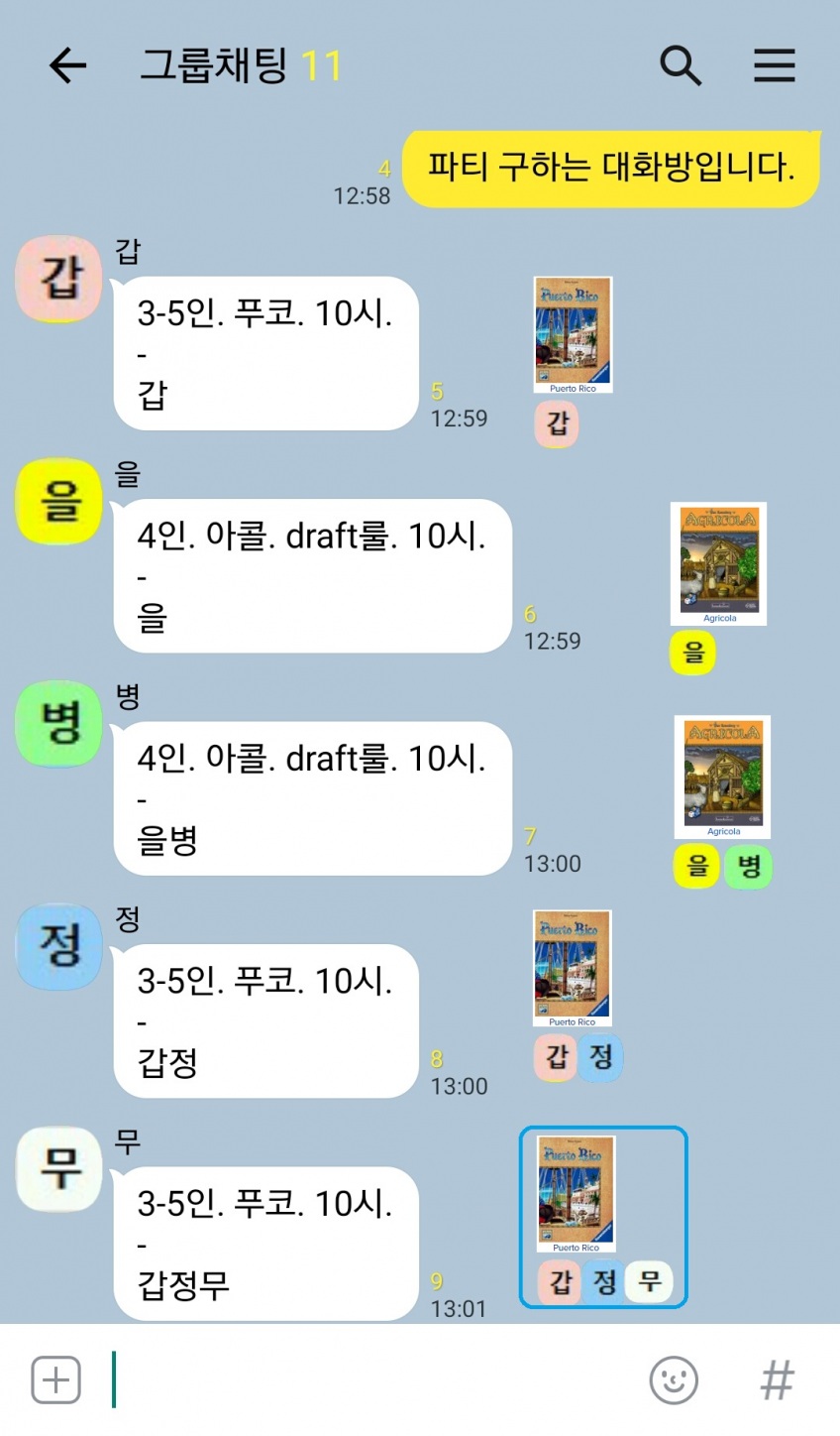 보드게임 모임 단체 대화방에서 쓰는 것입니다.